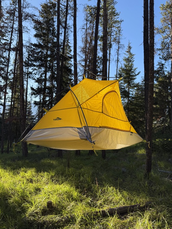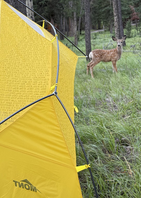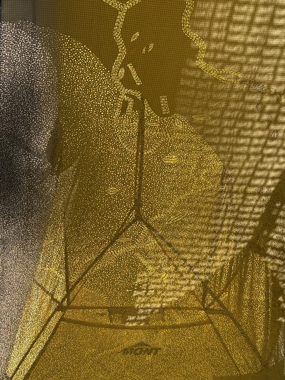Moondance holds the slow choreography of an extended mountain walk in Banff National Park. This itinerant architecture was repetitiously carried, unpacked, constructed, inhabited, deconstructed and re-packed over several days and nights, operating as both refuge and companion to the solo walker. En route, each interaction was a gesture of ecological and material correspondence; in the studio, iterative mark-making transformed memory into meditative texts and imaginative trajectories. Later, suspended in the forest and illuminated in the early morning light, it hovered as a drawing of air and of attention – a shimmering inquiry into the ethics of inhabitation.